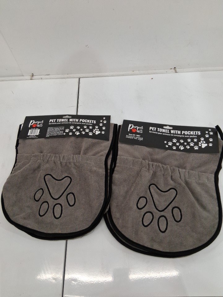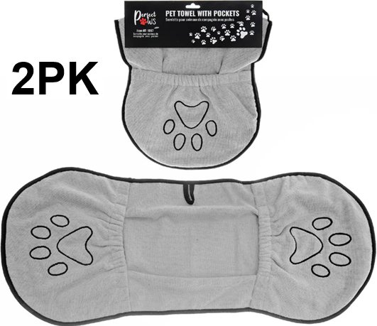 2PK perfect paws pet towel with pockets - grey/black - (Style: ht-1067)
