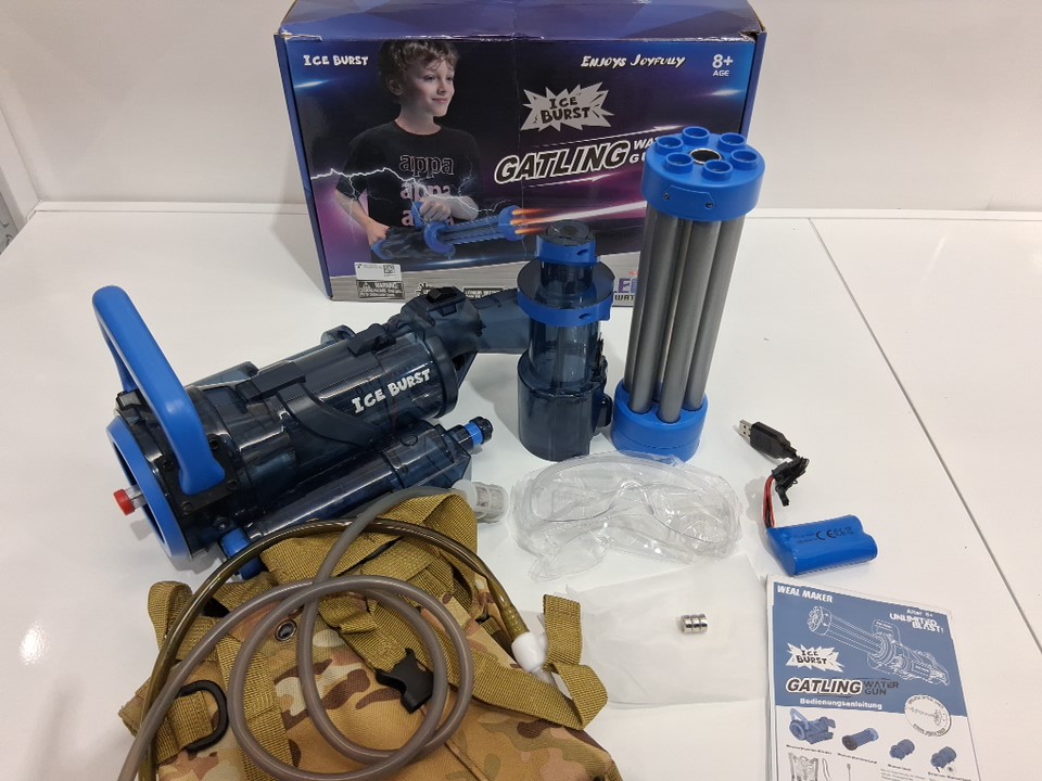 water tank and barrel has signs of previous use, missing the small screw to hold the battery in. does come with second battery. tested for power