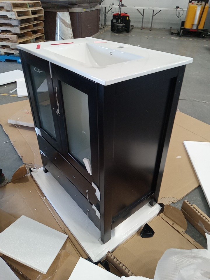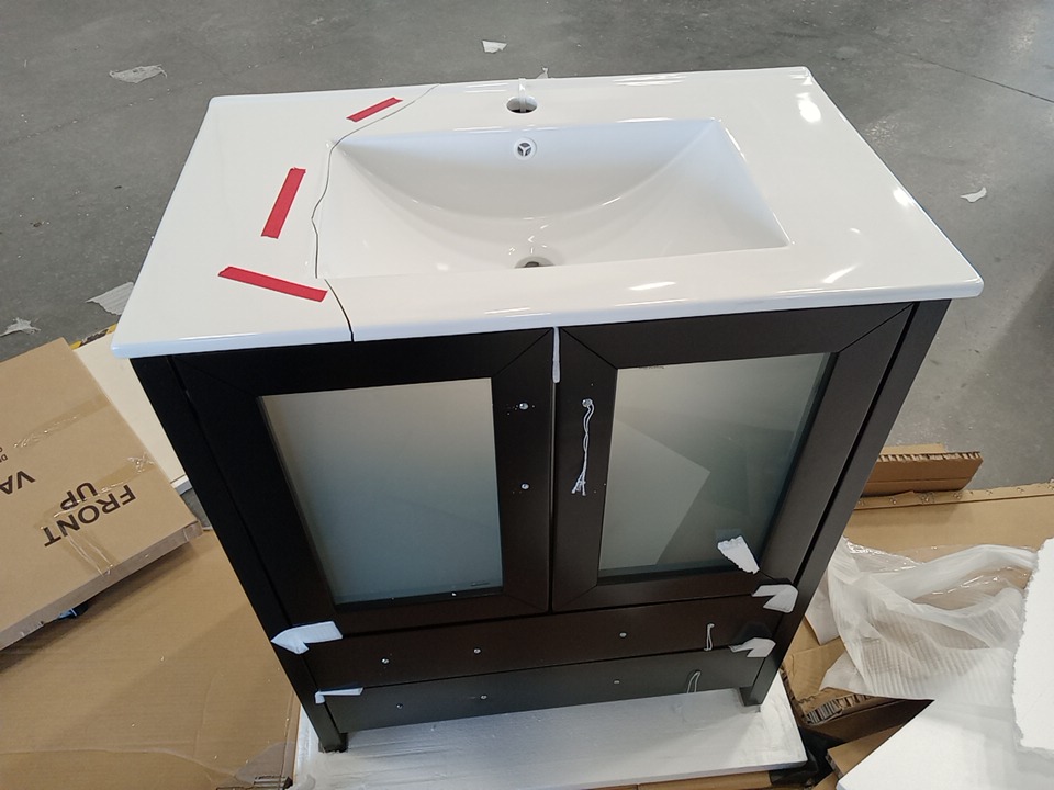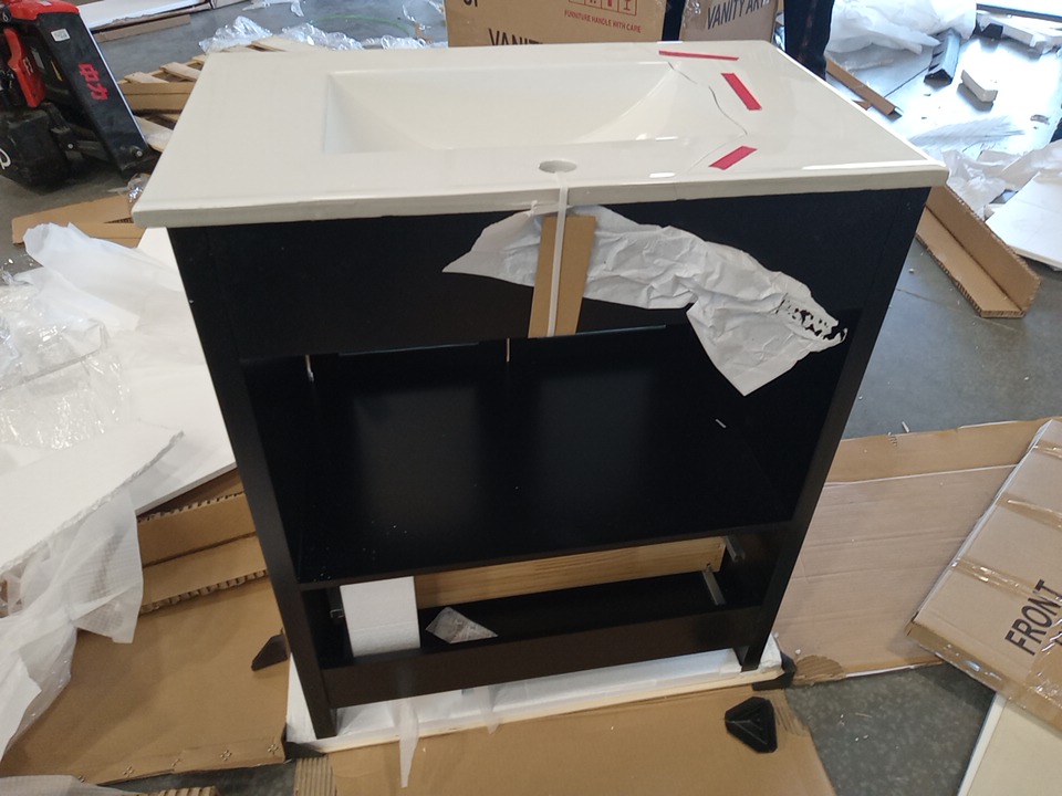 The item appears new, however the sink is broken due to shipping/handling. (One can still replace the sink)