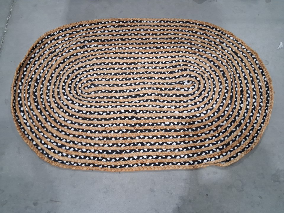 indoor hand woven oval jute rug - 24'' x 36'' - Multicolour