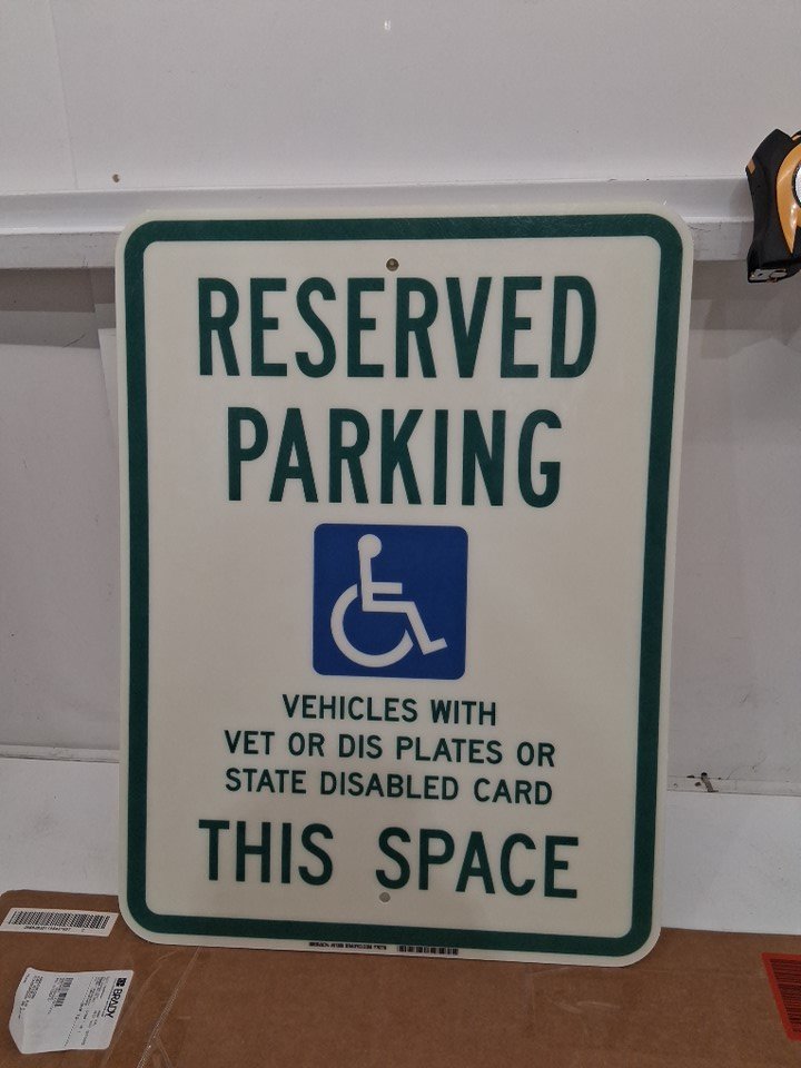 RESERVED PARKING THIS SPACE fiberglass Sign - 18 x 24" - white/green/blue (model: 91386)