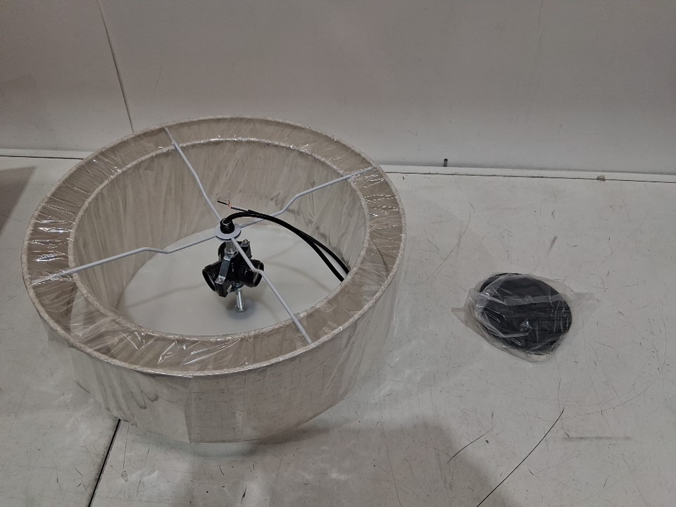 Calokes 3-Light Dual Drum Lenin Semi Flush Mount Ceiling Light - 16" x 12" - White with BLACK BASE (Model: ICL-BD-001)