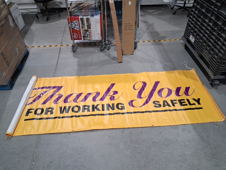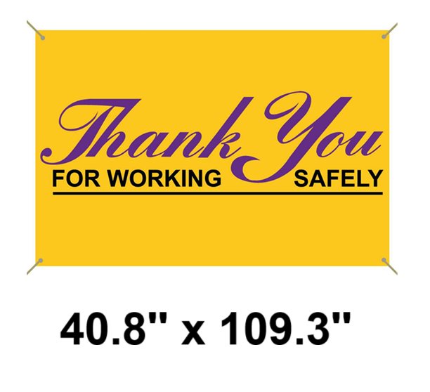 "Thank you for working safely" Safety Slogan Banner - 109.3'' x 40.8'' - Yellow/Purple/Black
