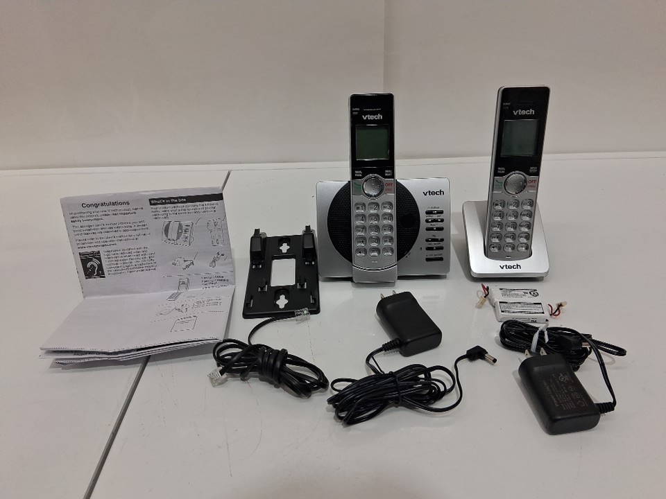 VTECH DECT 6.0 DUAL HANDSET CORDLESS PHONES WITH ITAD, CID, BACKLIT KEYPADS AND SCREENS, FULL DUPLEX HANDSET SPEAKERPHONES, CALL BLOCK - BLACK/SILVER (MODEL: CS6929-2)