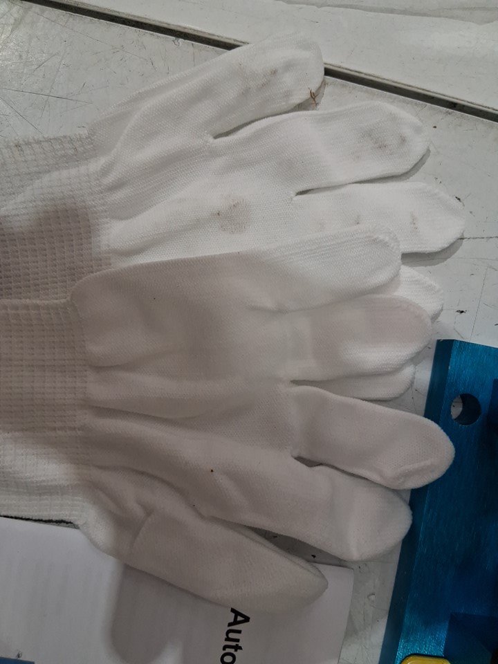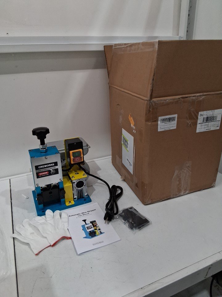 please note there are sign of light use such as dirt on gloves, a scratch, and wire remnants on the machine. see photos.
