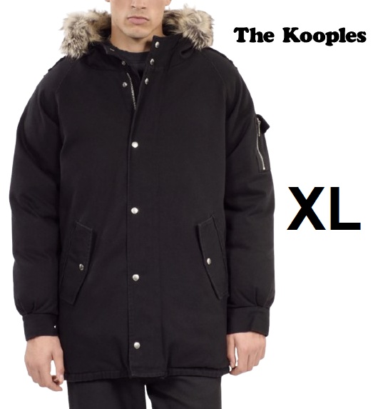 Men's The Kooples parka with removable fur hood effect - Extra Large - black (Style: HPAR29003KW24)