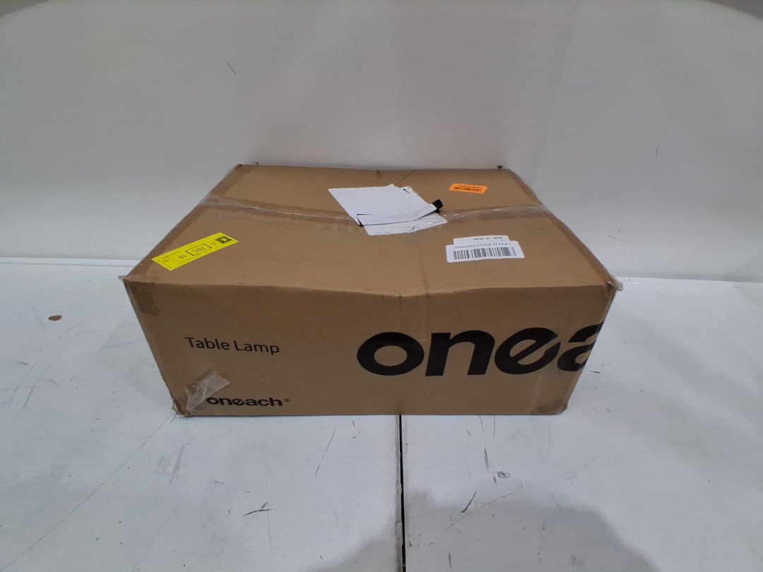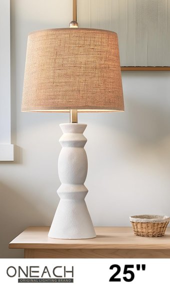 Oneach farmhouse ceramic table lamp - 25" - white/brown (model: amz-t1110bk-1)