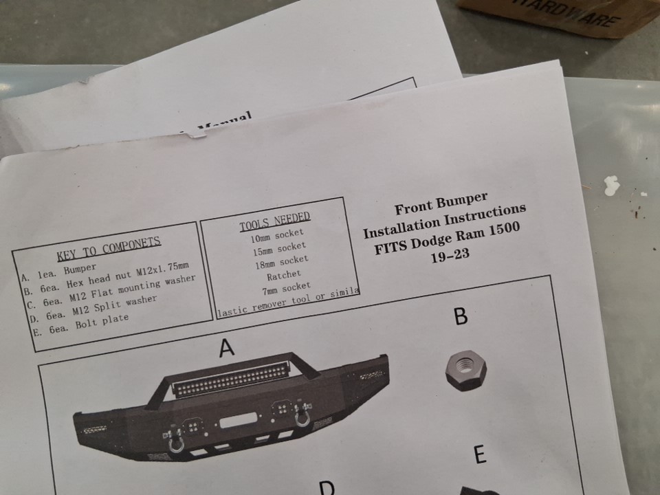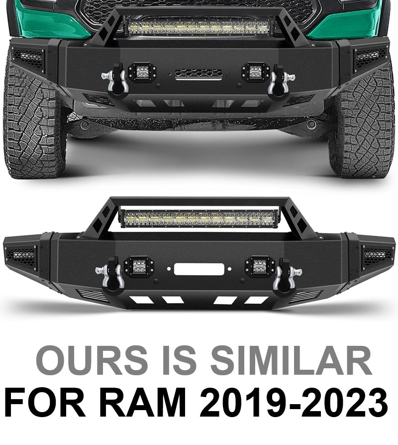 Textured Black front Bumper fit for Dodge Ram 1500 2019-2023 Classic Front Bumper Replacement with D-ring and Winch Plate