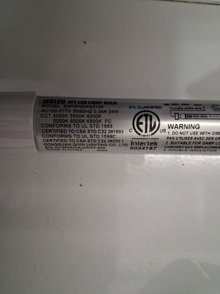 12PK JESLED T8 frosted LED Tube Lights - 18W - 6000K - 4FT - white (model: SWT81824A2120)