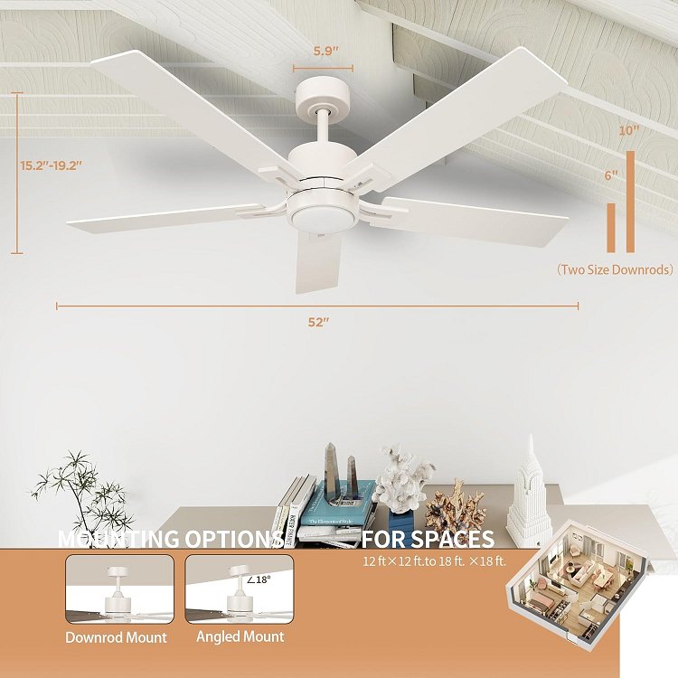 Vagizm modern Ceiling Fan WITH remote & dimmable led light - 52" - 3000k-6000k - white (MODEL: cfl-012w5)