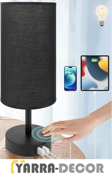 yarra-decor Touch Control and dimmable Table Lamp with usb charging ports - 14" x 5" - black (model: ‎TD-001)
