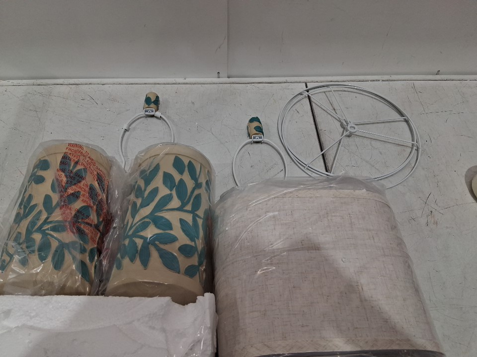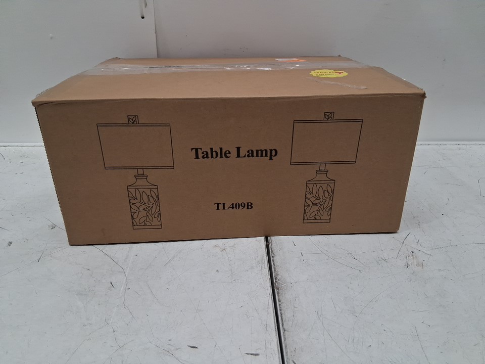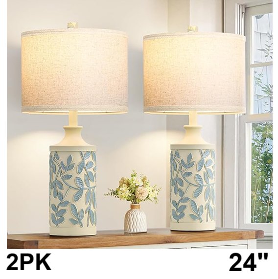 2pk farmhouse table lamps for bedroom light bulbs included - body leaf pattern - 24" (model: sp-tl409b-be)