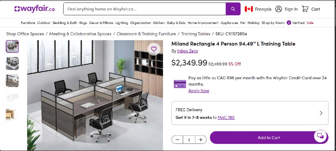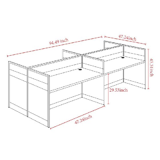 Rectangle Training Table with 4 cubicles - 94.49'' x 47.24" x 43.31" - walnut/ natural wood
