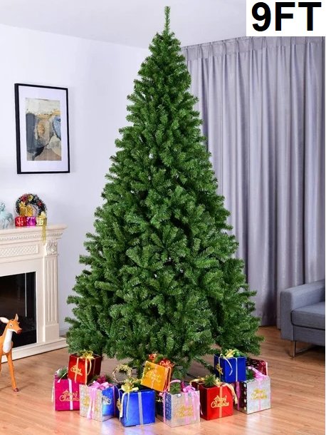 Costway PVC Artificial Christmas Tree Premium Hinged with Solid Metal Legs, 9FT - GREEN (MODEL: CM21222)