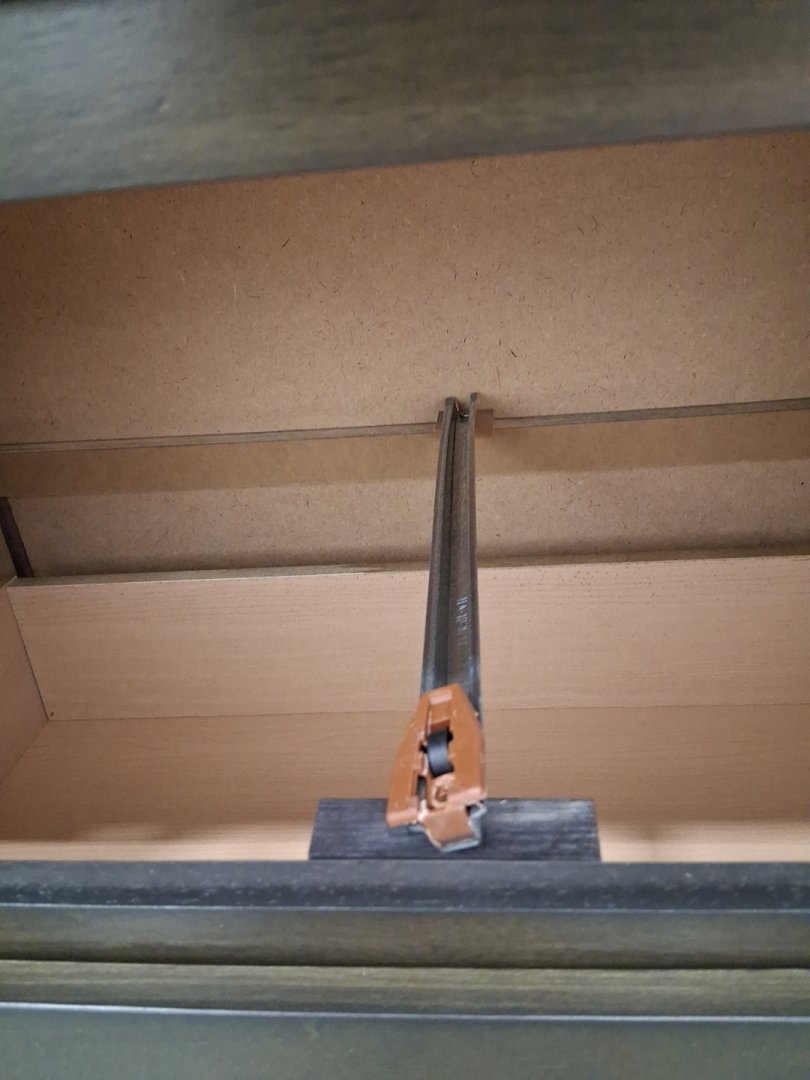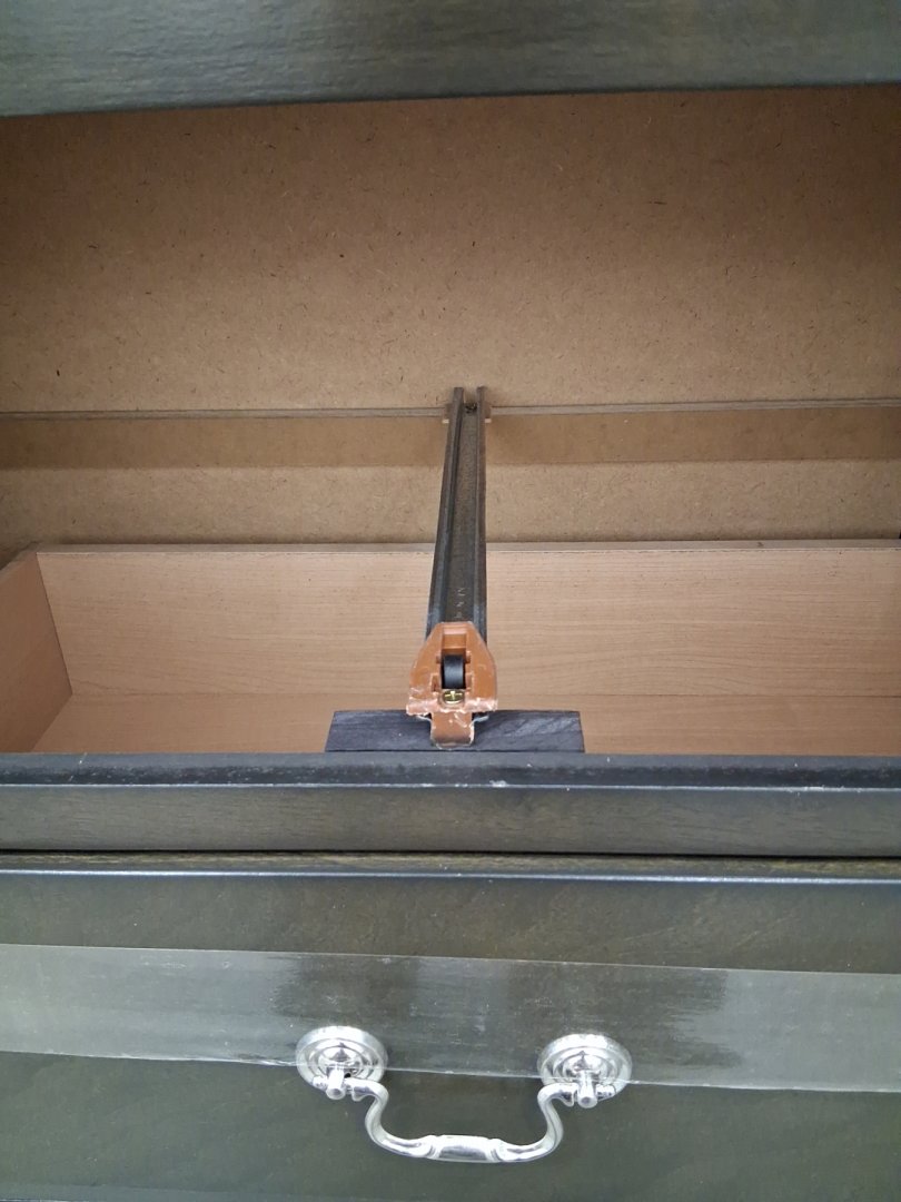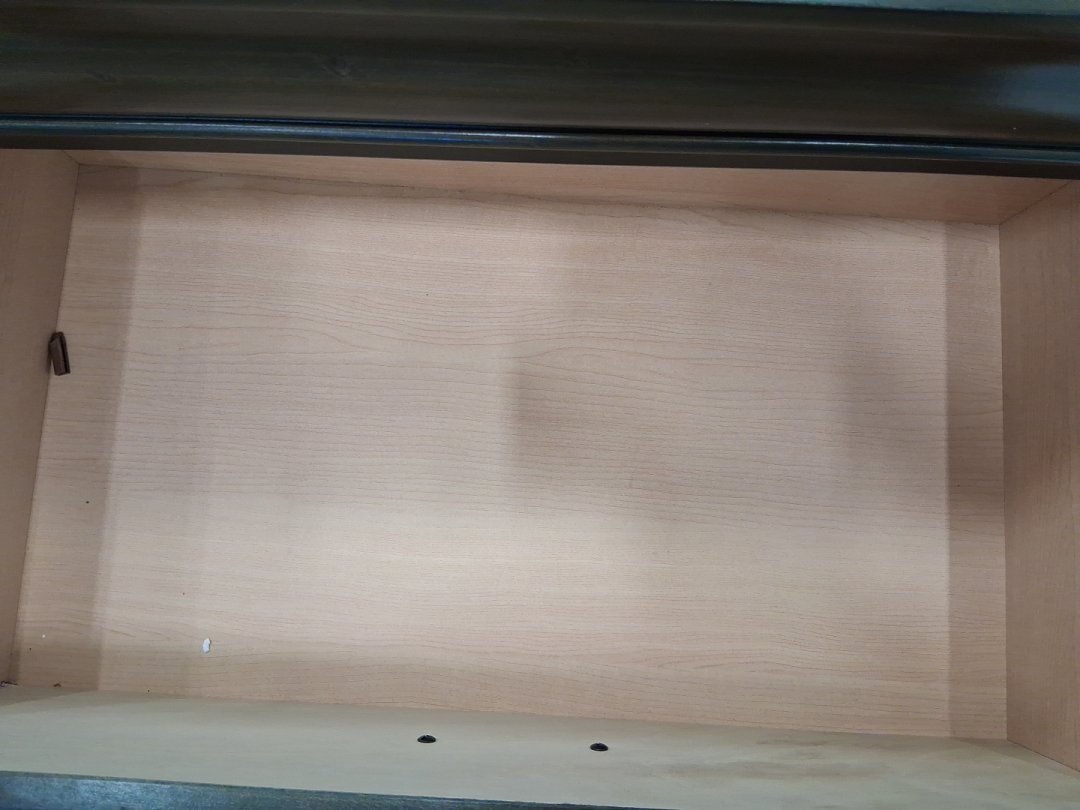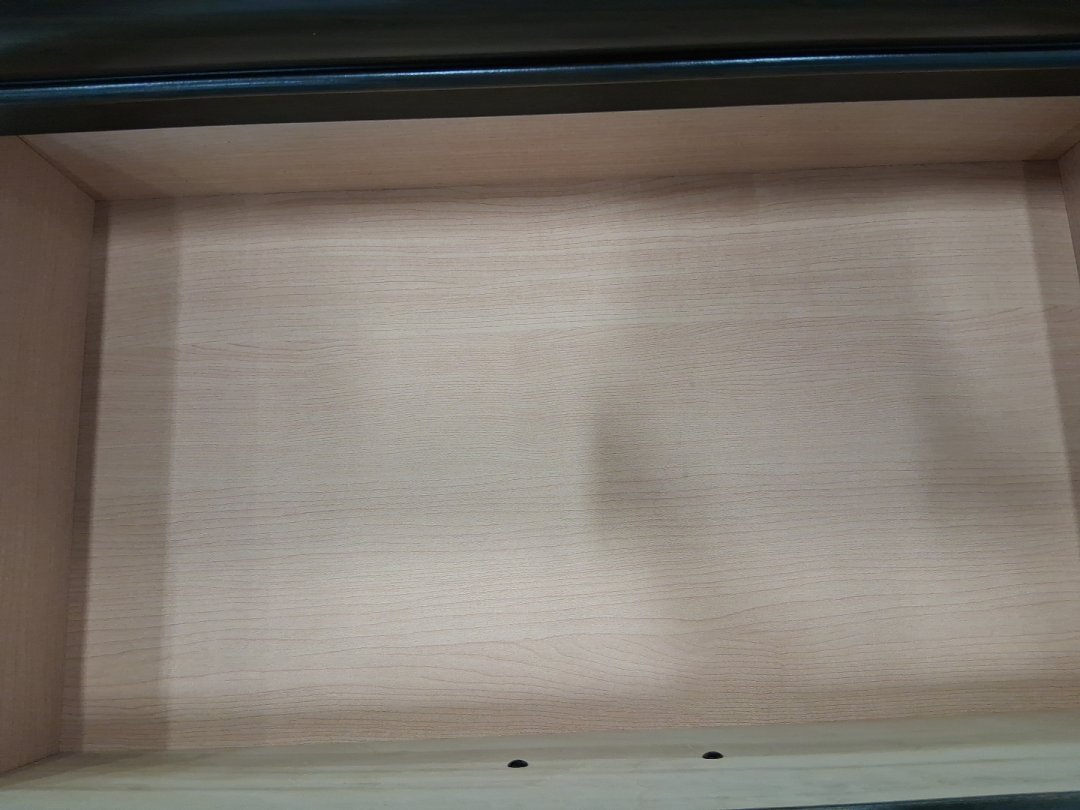 Top four of six drawers need new metal tracks, back panel need stapled back into place, see photos.