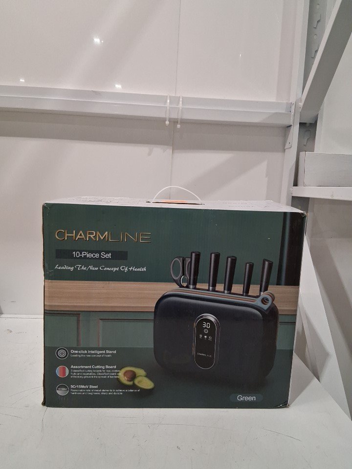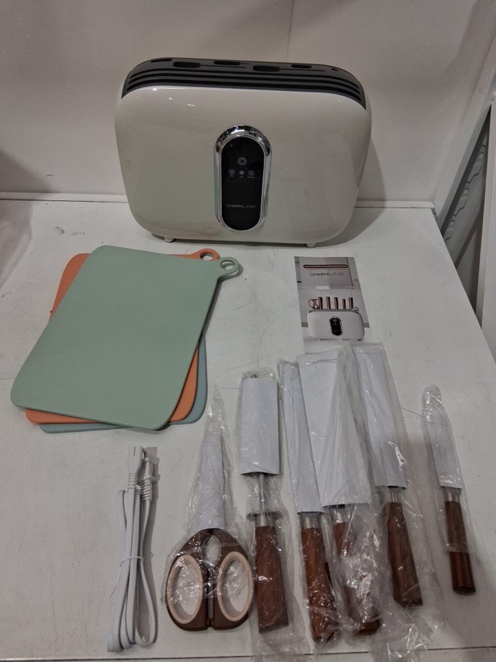Charmline Smart Cutting Board and Knife Set with Double Cleaning and Drying Function- 100-120v - green/cream/brown (model-‎CL-CTB-SET-Q-W)