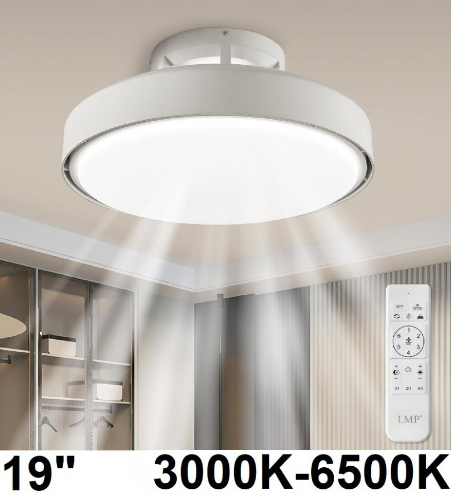 LMP Ceiling Fans with Lights and Remote - 3000K-6500K, 3500LM, 56W - 19" - White (Model:DL-WS-A02)