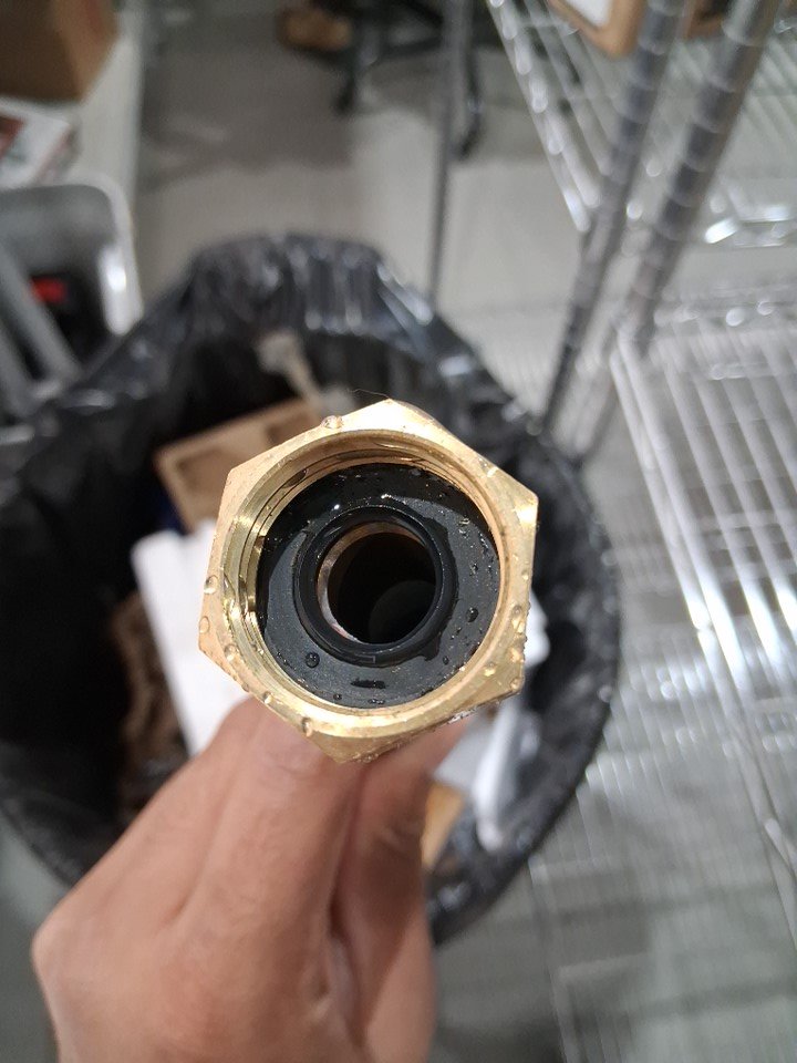 while inspecting the item, water came out from the hose and there is bit dirt on the hose reel (see photos).