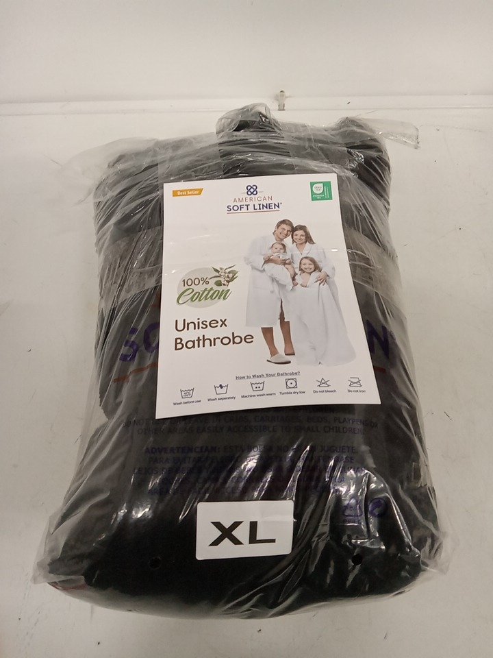 American Soft Linen Unisex Fleece Bathrobe - XL - Black (model: BR-XL-XXL-Black--W66)