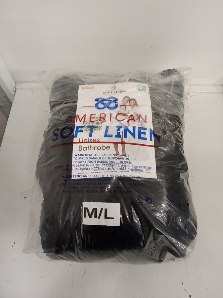 American Soft Linen Unisex Fleece Bathrobe - M/L - Black (model: BR-M-L-Black--W26)