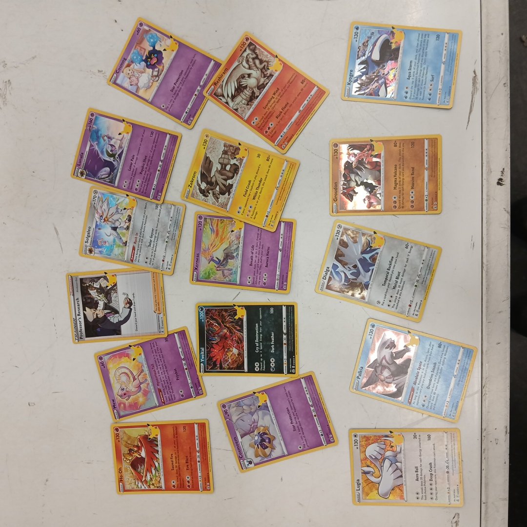 Approximately 400 common, uncommon, and assorted rares. Sealed pack of 50 energy. ***Complete set of 2016 Celebrations Holofoil Rare Art set*** 5 Code cards. 1 Counter, *** + 2 random full arts rares *** Comes in a Prismatic Evolutions ETB Storage box.