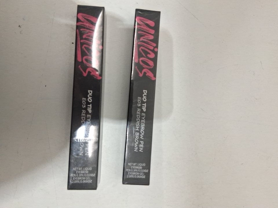 2 Unicos Duo Tip Eyebrow pen - long lasting, smudge/waterproof - reddish Brown(E03)