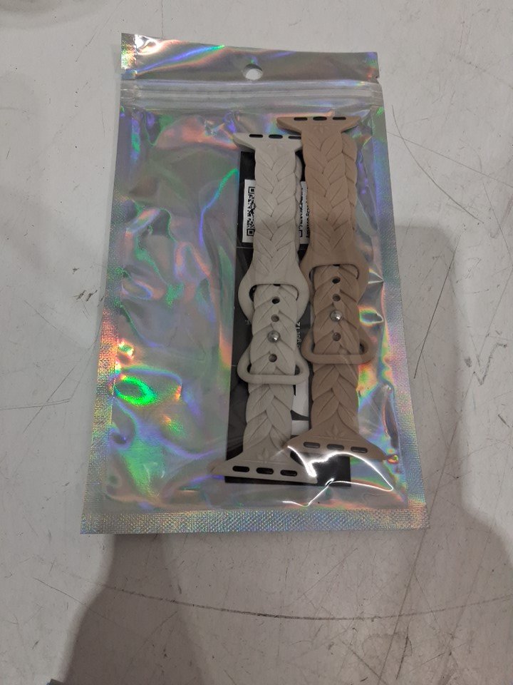 2pk JR.DM slim decorative engraved waterproof silicone watch bands compatible with apple watch - 38mm to 42mm - starlight brown/milky tea