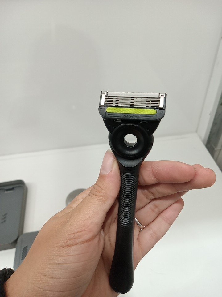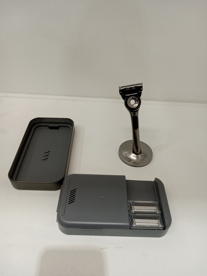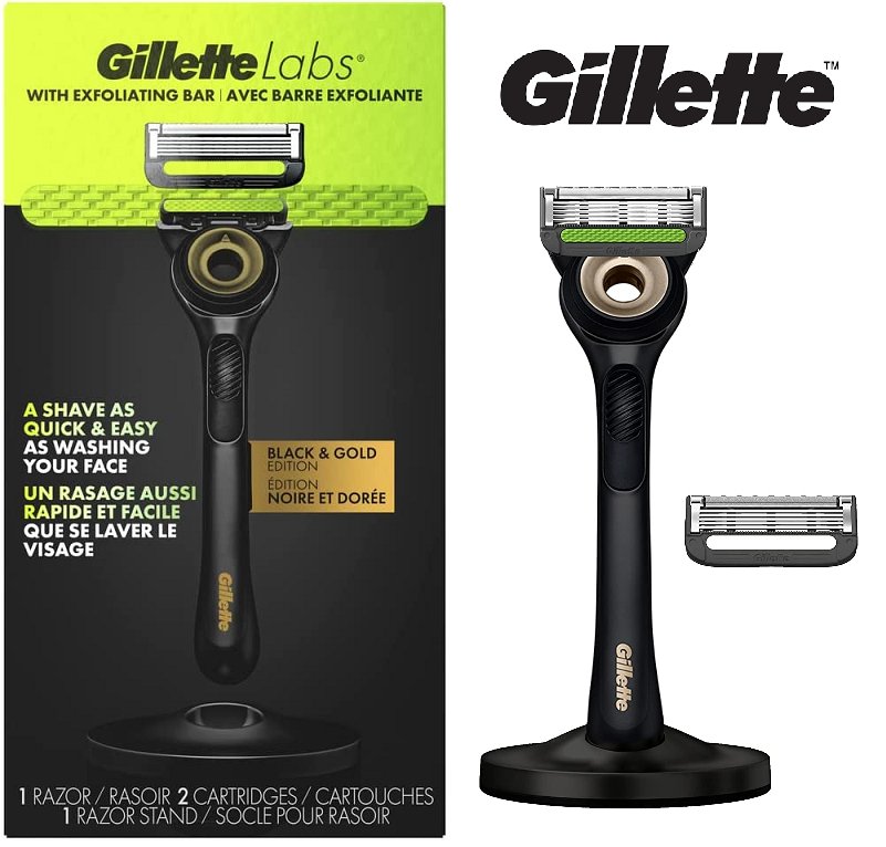 GILLETTE LABS RAZOR WITH EXFOLIATING BAR, MAGNETIC STAND AND 2 RAZOR CARTRIDGES - BLACK/GOLD EDITION