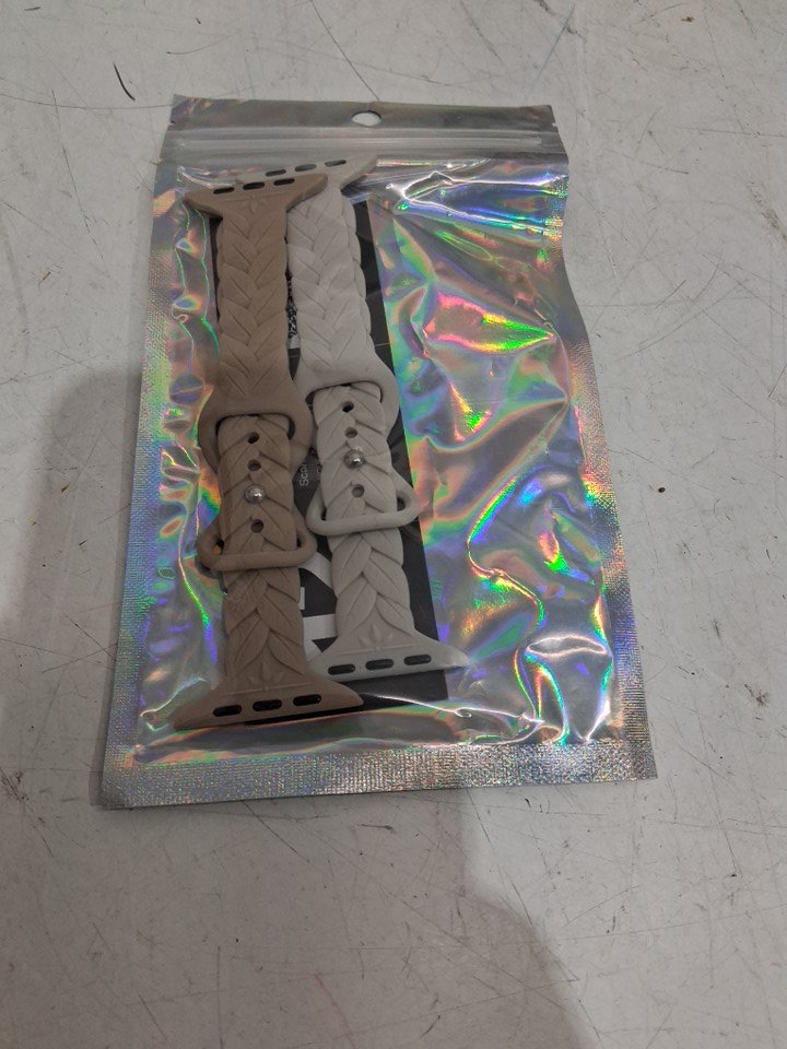 2pk JR.DM slim decorative engraved waterproof silicone watch bands compatible with apple watch - 38mm to 42mm - starlight brown/milky tea