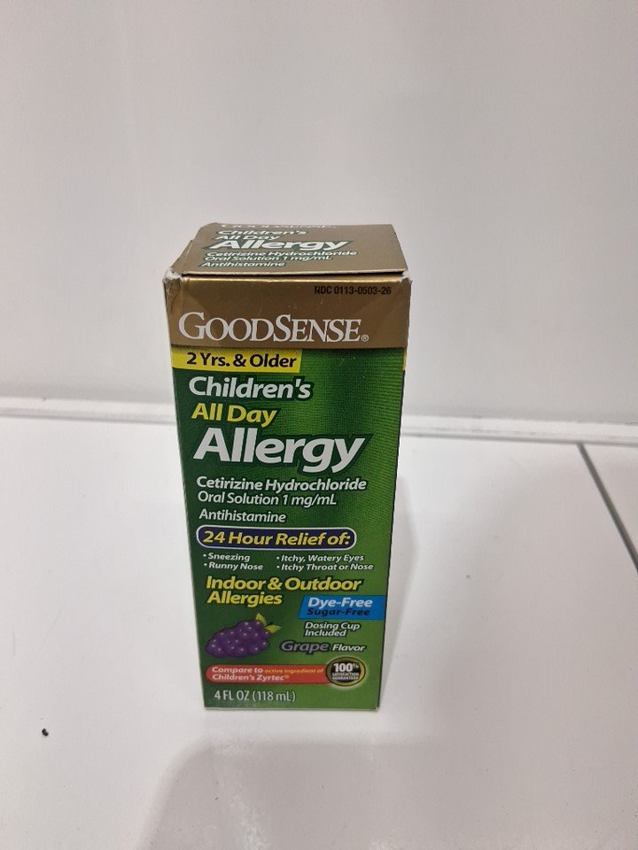 goodsense children's all day allergy 24hr relief cetirizine hydrochloride oral solution - 2yrs and older - grape flavour - 118ml