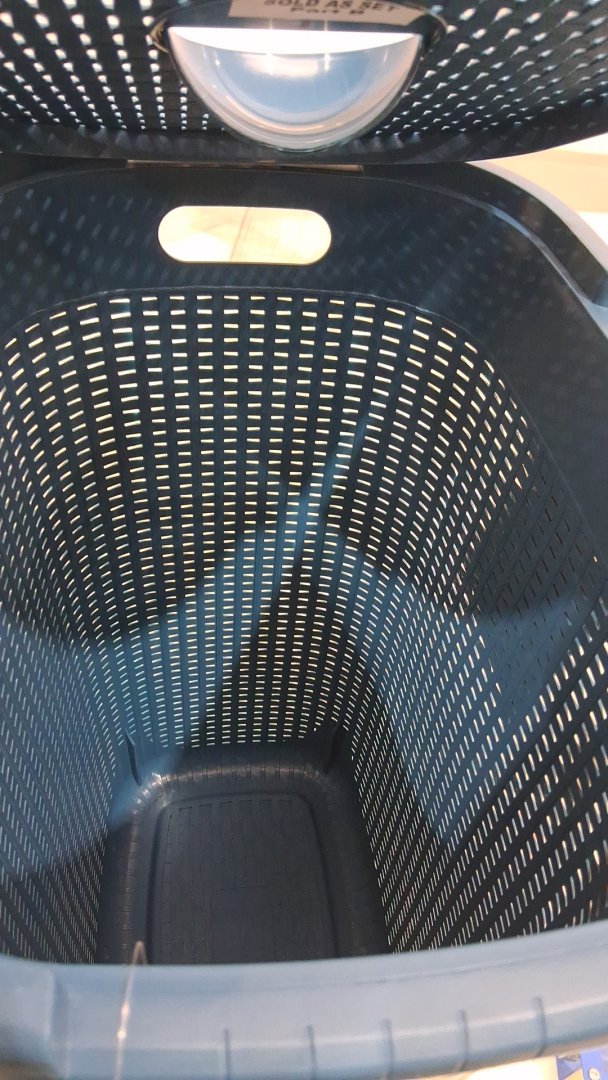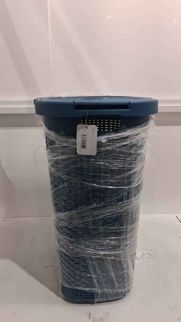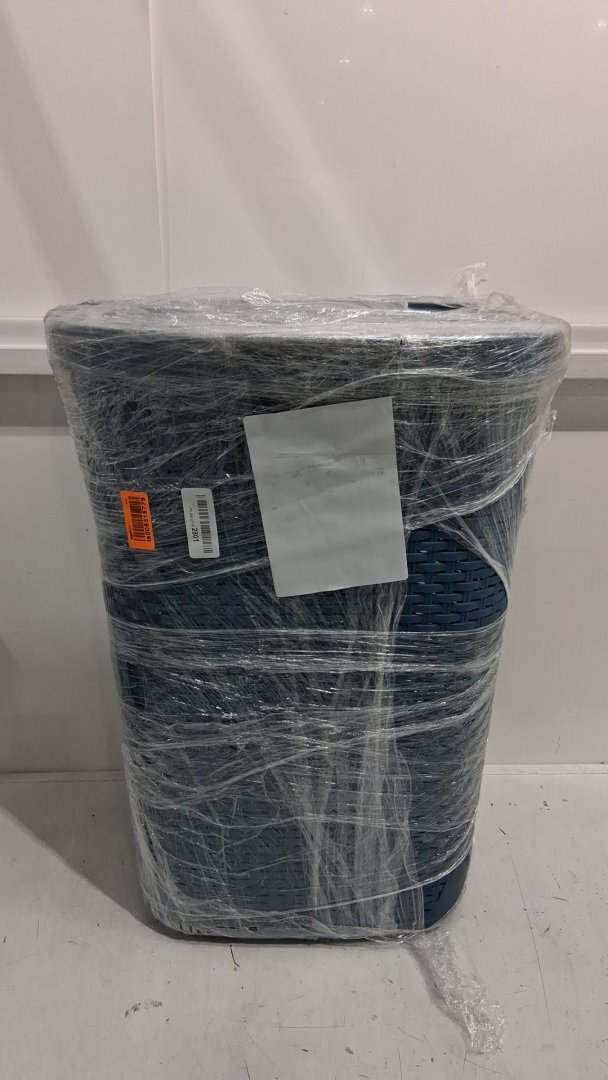 mind reader slim ventilated laundry hamper with lid - 60l - blue