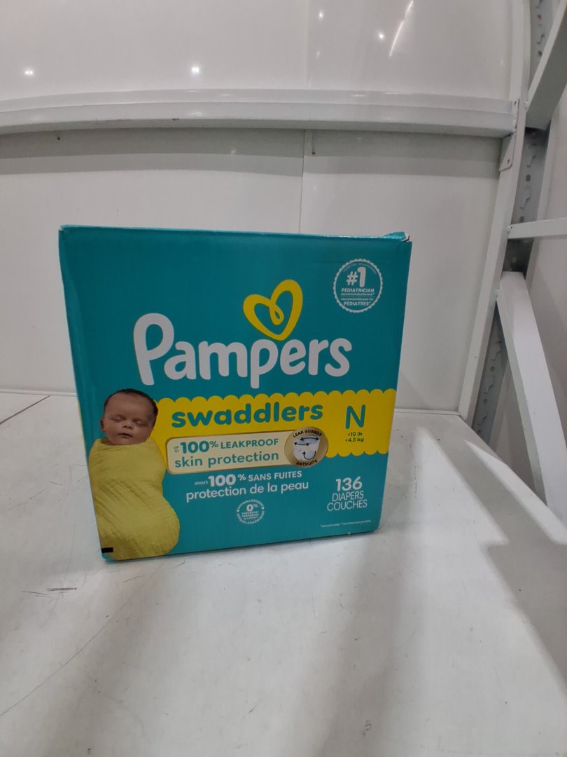 136PK PAMPERS SWADDLERS DIAPERS - NEWBORN SIZE 0