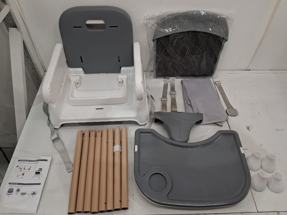 Food residue staining on straps and main seat indicate previous short-term use. (See photos)