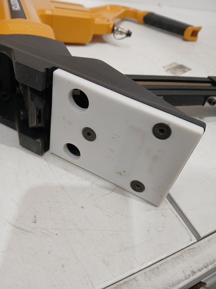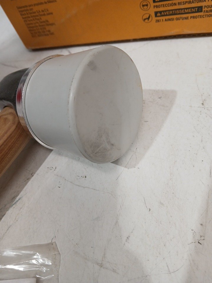 The hammer included has some scuff marks indicating use. Some parts are sealed.