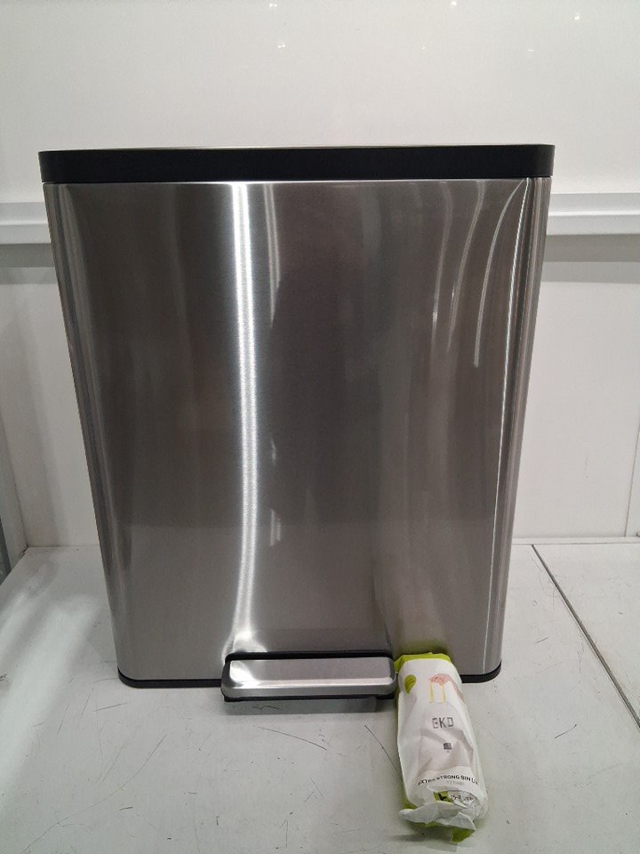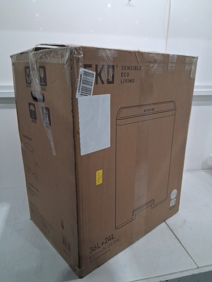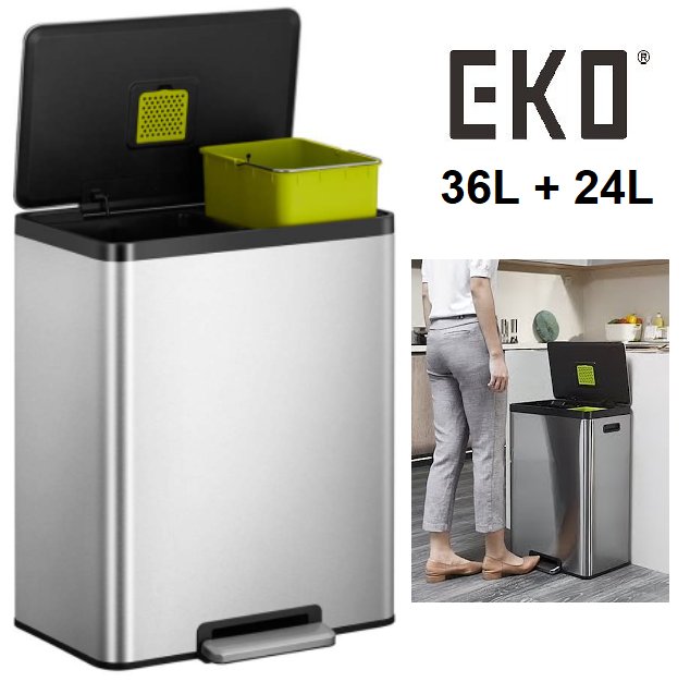EKO ECOCASA II DUAL COMPARTMENT STEP TRASH CAN - 36L AND 24L BINS - BRUSHED STAINLESS STEEL FINISH (MODEL: EK9138MT-36L+24L)