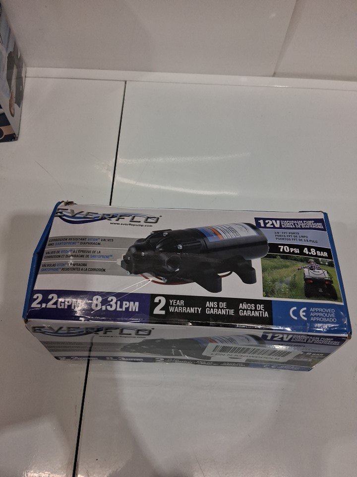 EVERFLO REPLACEMENT FOR AGRICULTURAL SPRAYERS AND FLUID TRANSFER APPLICATIONS DIAPHRAGM PUMP 12V 2.2 GPM, QUICK ATTACH PORTS, 70PSI, 8FT SELF PRIMING, STANDARD MOUNT PATTERN (MODEL: EF2200-QA-BOX)