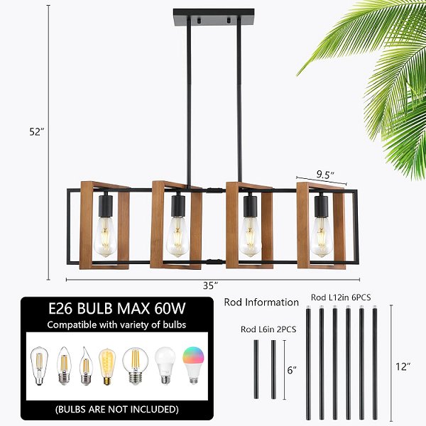Modern Dining Room Farmhouse chandelier - 52" x 35" - matte black - (Model: 1001-4R-01)