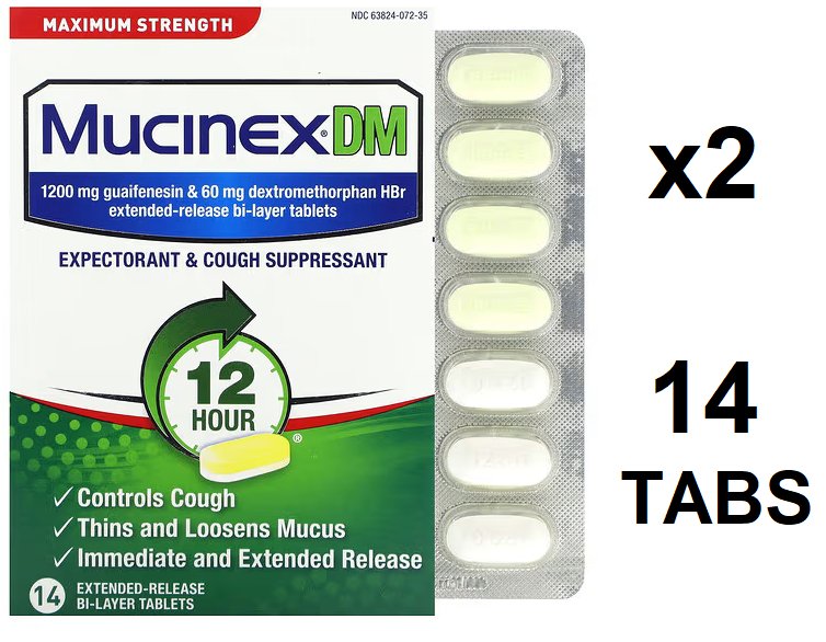 2(14 tablets) mucinex dm expectorant & cough suppressant, maximum strength