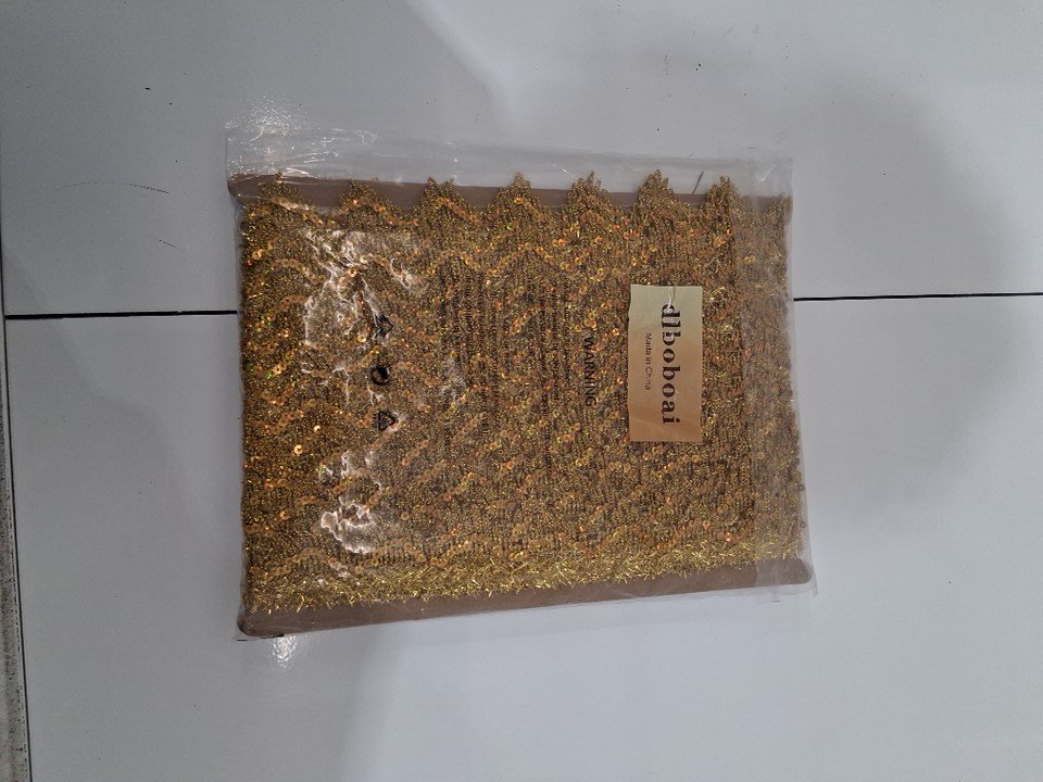 Sequins Lace Trim Ribbon Glitter Mesh Decorative - 42ft x 1.5" - gold