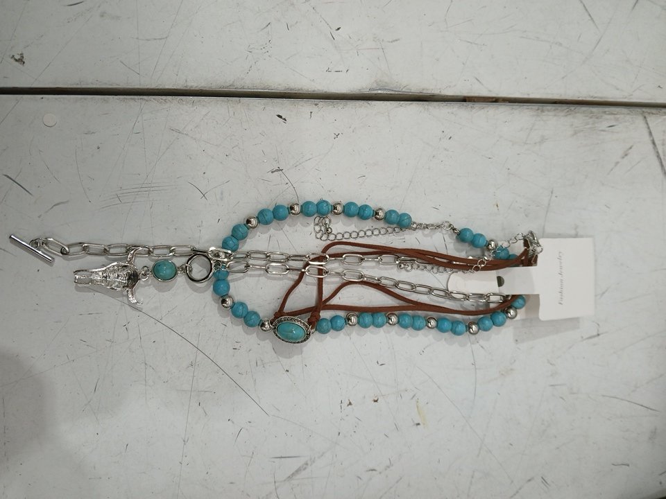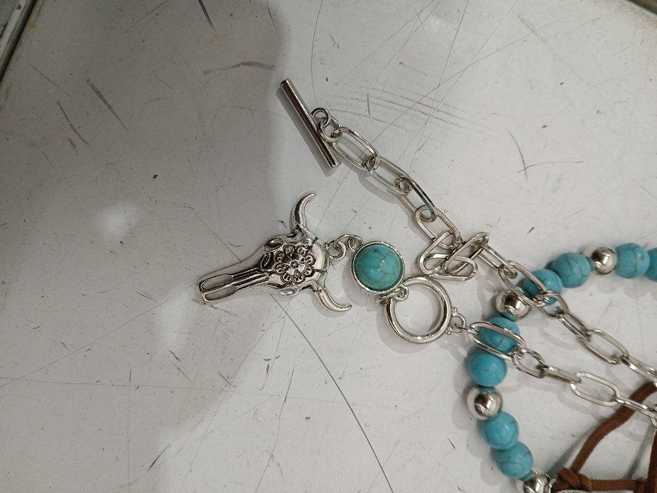 3PC WOMEN'S LAYERED Vintage Western Necklace - BROWN TEAL SILVER