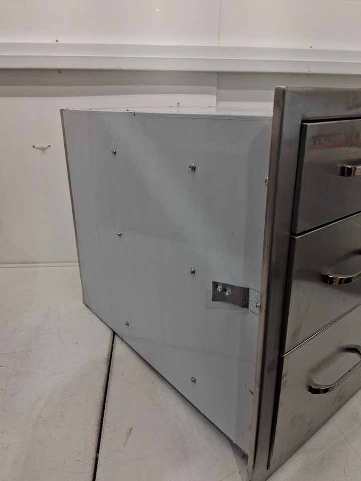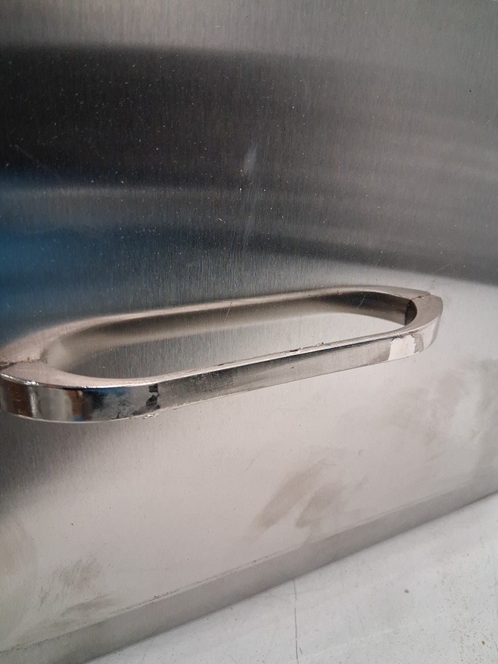 Drawers still have plastic coating on casing. Handles have paint rubbing off and drawers have hand smudges
