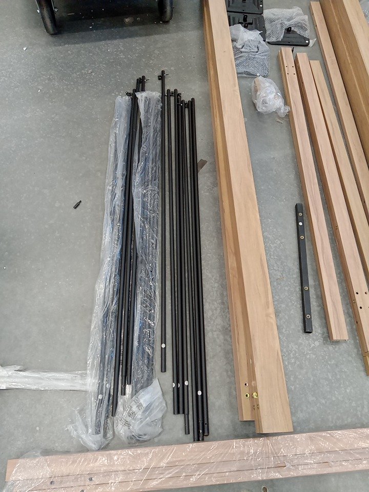 Their are some dirt marks, rusting / decolorization, scuffs, scratches, fraying and blemishes on this item, this seems to be due to previous assembly as these marks are present around the assembly points of this item, their is some dirt on the canopy pieces due to prior light use. we have found no instruction manual for this item meaning we are unable to confirm if all vital parts for assembly are present, however it does seem that the vital parts for assembly are present. see photos below.