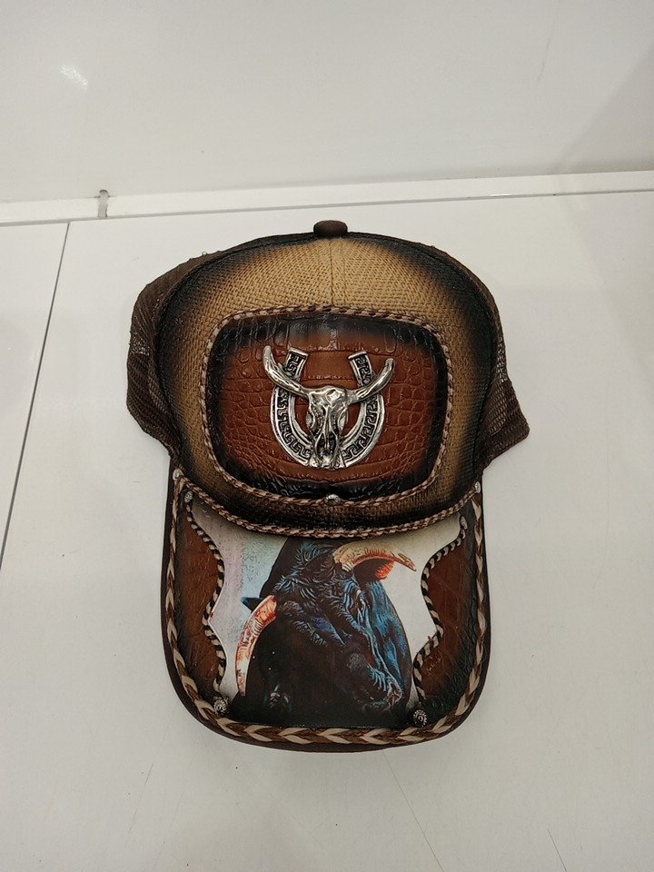 J & A CAPS INNOVATION western snapback ball cap with longhorn skull/horseshoe emblem & bull graphic - OSFM