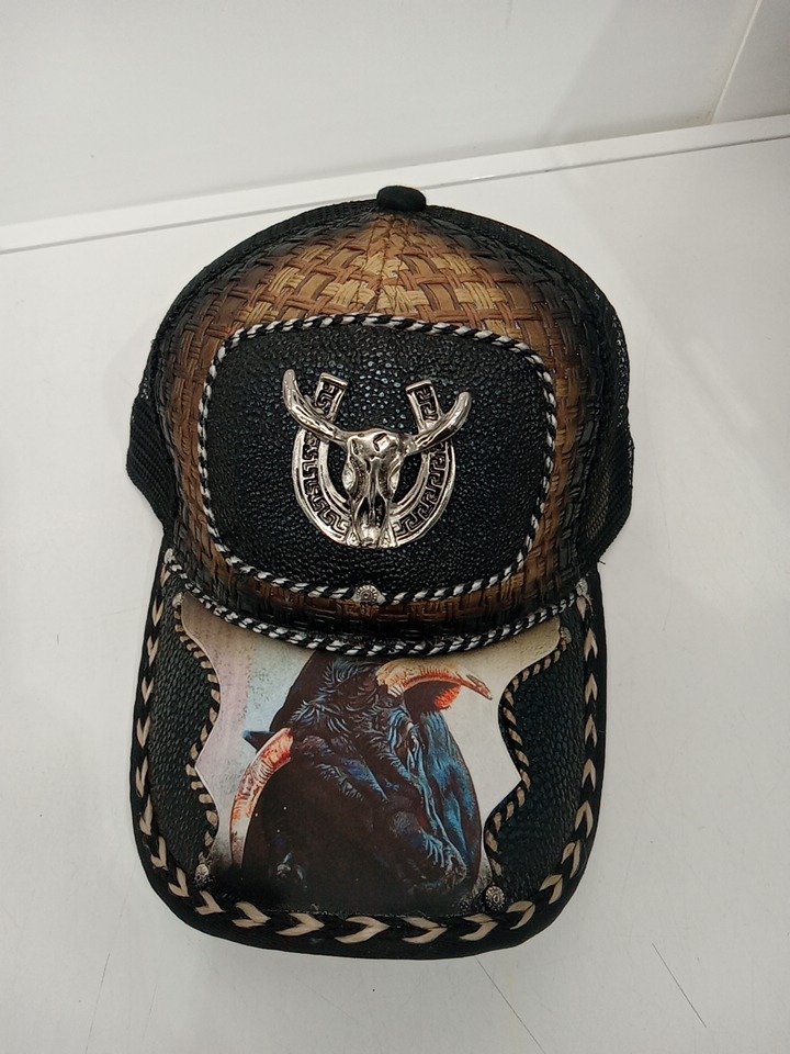 J & A CAPS INNOVATION western snapback ball cap with longhorn skull/horseshoe emblem & bull graphic - OSFM