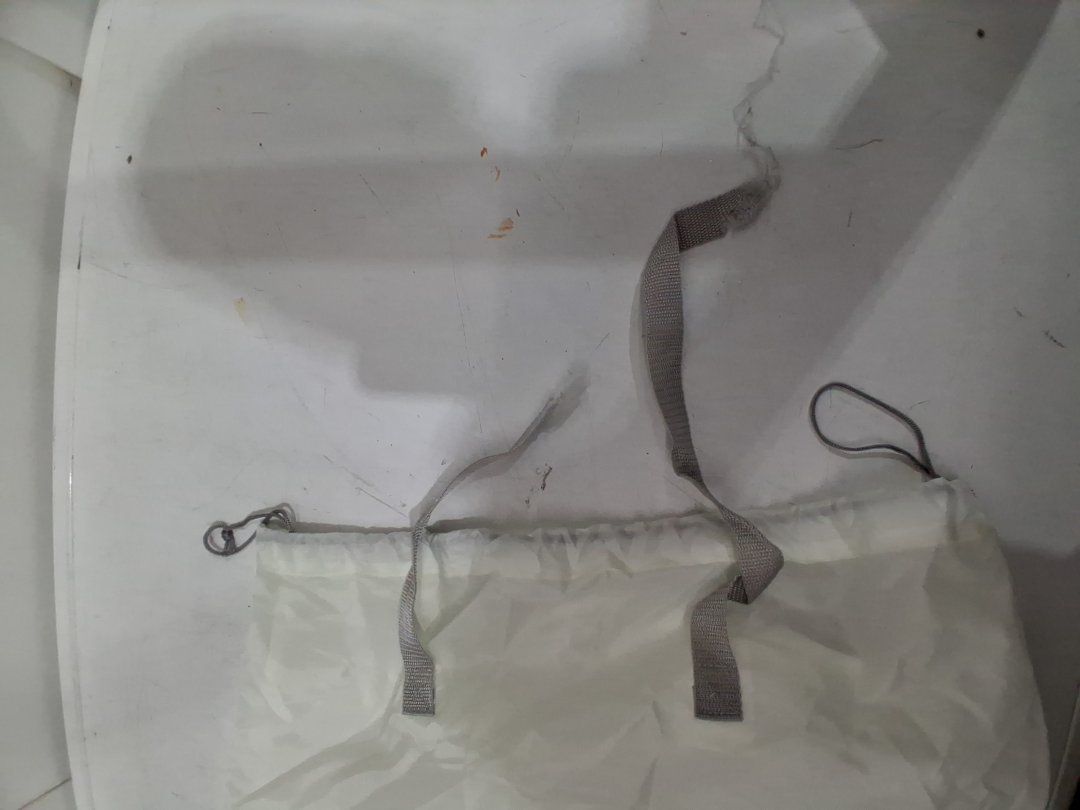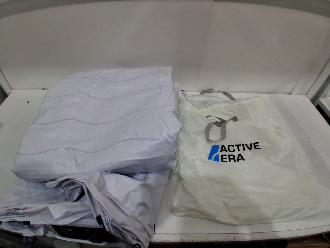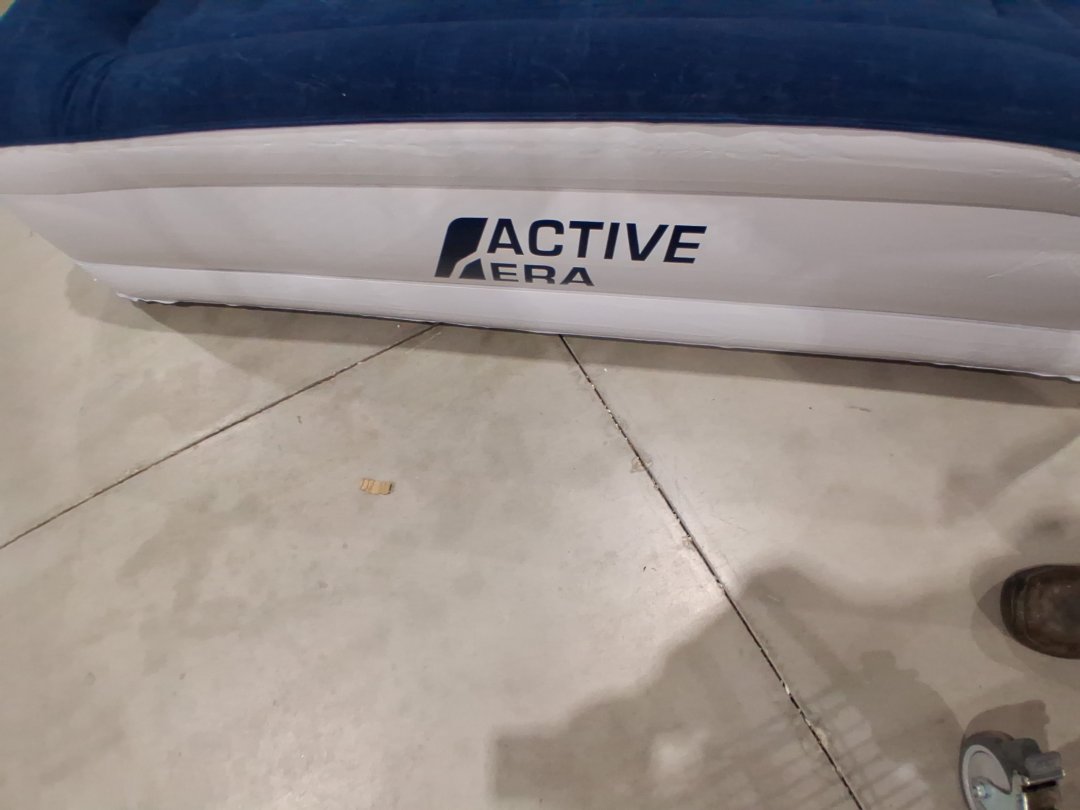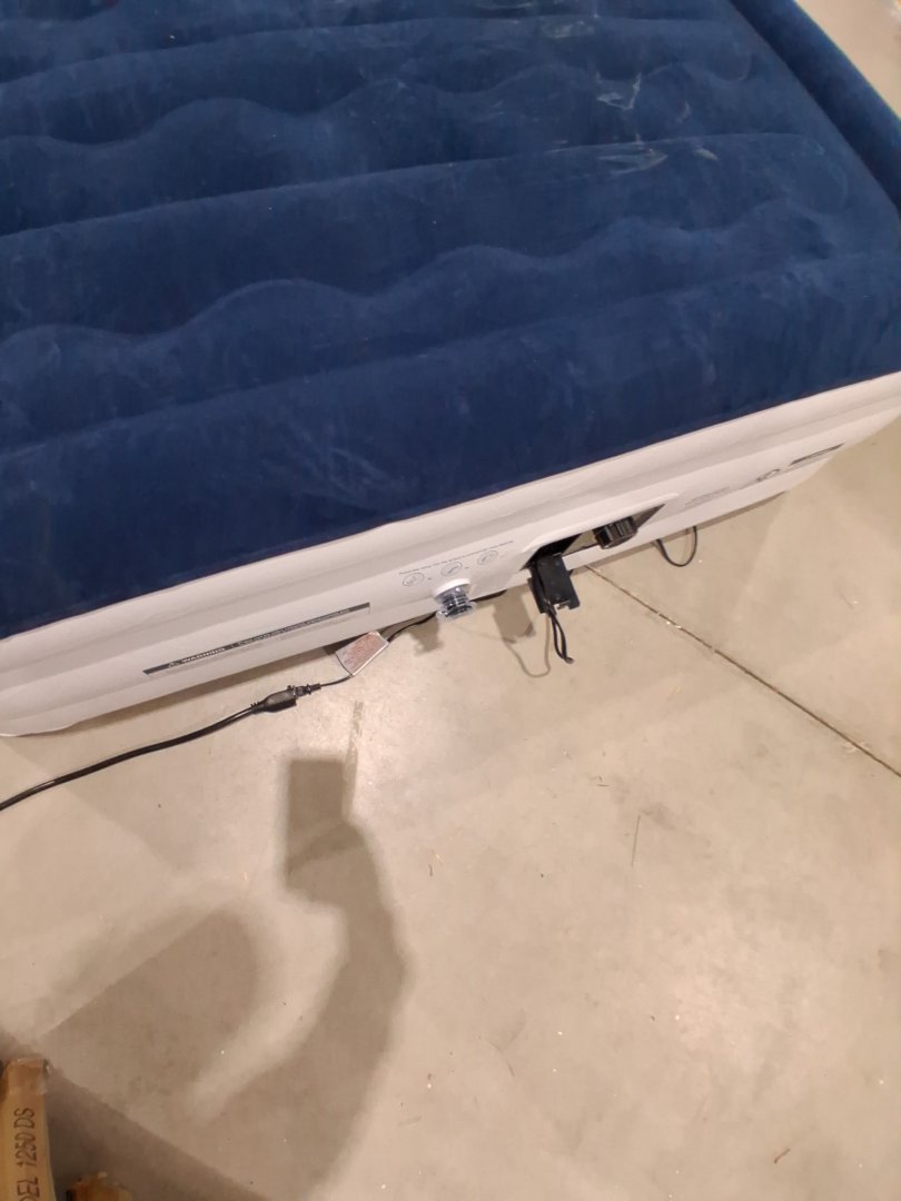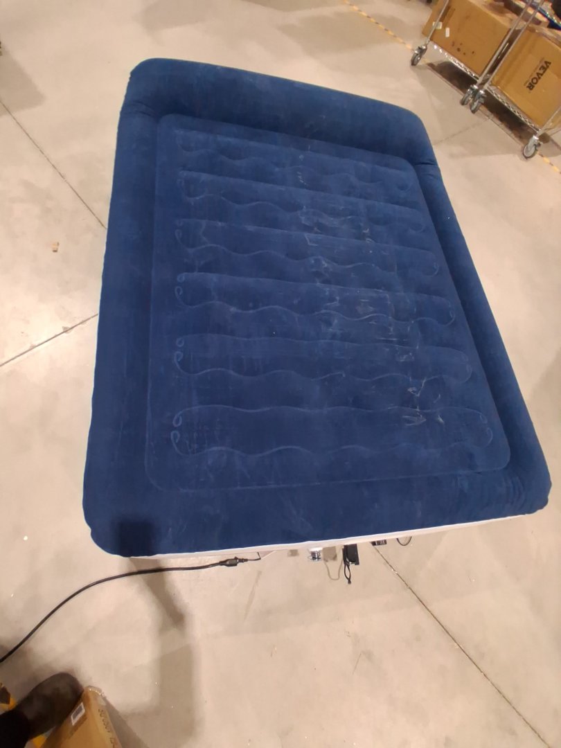 tested for power, working. inflated/deflated. some light dirt/dust on bottom side. Carrying bag has broken handle