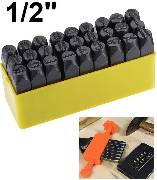 Punch Press Letter Stamp (A-Z &) Tool for Metal Plastic Wood Leather - 1/2"