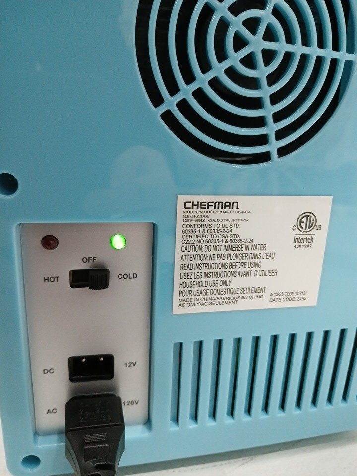 CHEFMAN Chill with Iceman PORTABLE PERSONAL FRIDGE with Car Adapter - 4 Litre - BLUE (MODEL: RJ48-BLUE-4-CA)