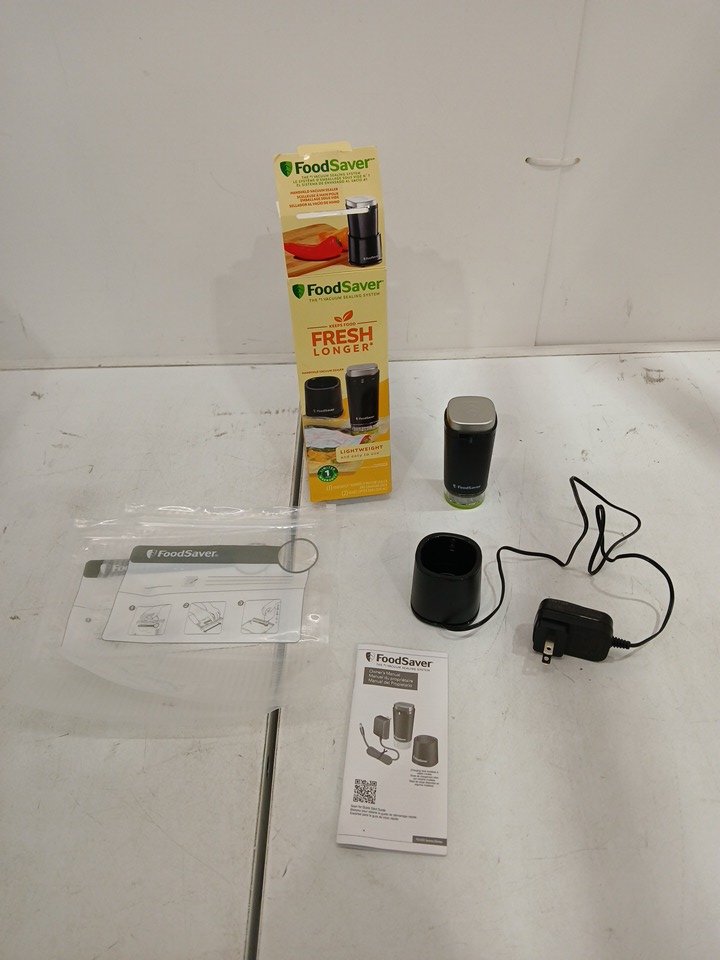 FOODSAVER HANDHELD VACUUM SEALER WITH charging DOCK and 1 quart zipper bag - black - (MODEL: FS1110).