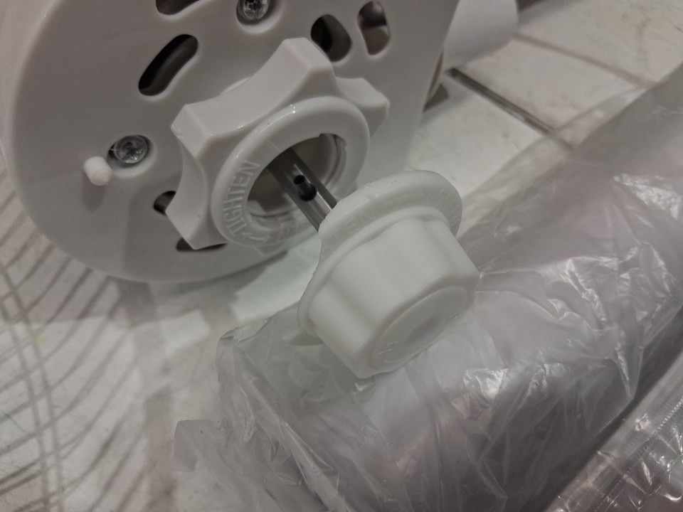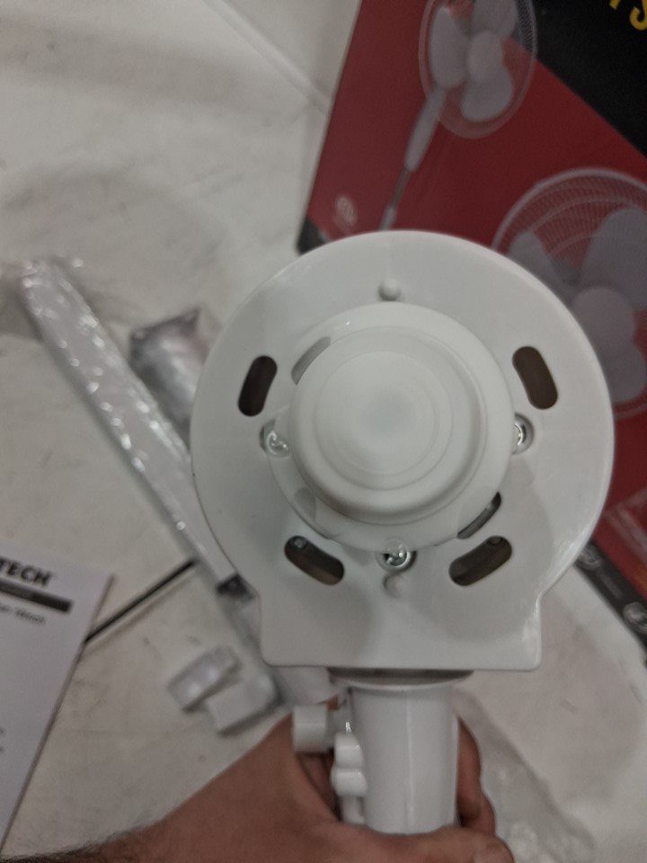 there is a crack in the plastic screw that holds the blades on. this will not effect the use of the fan