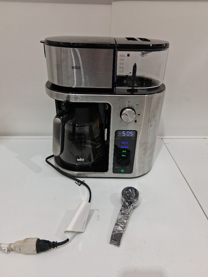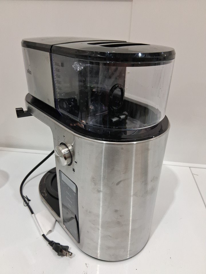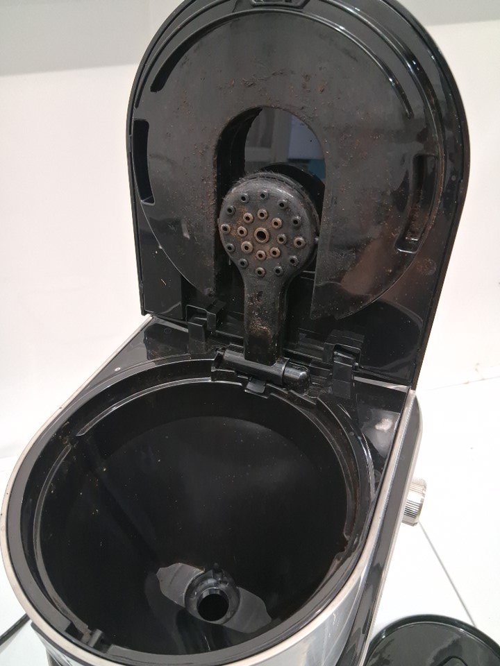 item tested for power, item has light coffee odour, item has light build up of coffee grounds in the basket area and will need to be cleaned before use (see photos)